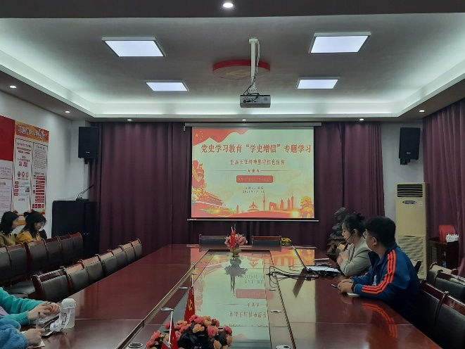 首先是支部书记廖弘宇老师进行发言,强调了作为一名青年员工党员,其学习党史的重要性和必要性,即继承与发扬党的成功经验和优良传统,也是领悟党的方针、坚定党的信念,通过对党的历史学习与总结,会有更深层次的领悟,也增强对党的认同感与归属感。