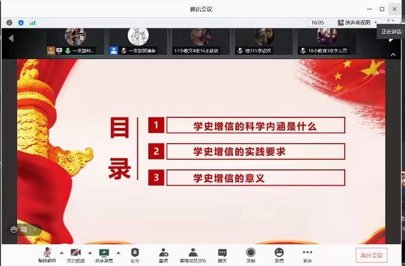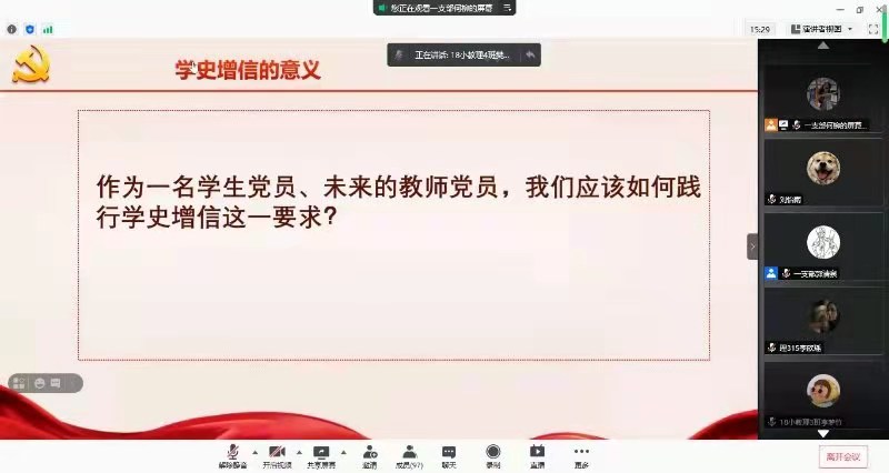 首先,何柳同志从学史增信的科学内涵是什么、学史增信的实践要求、学史增信的意义三方面进行理论指导,组织学习了习近平总书记的重要讲话和在党史学习教育动员大会上的重要讲话精神。随后,董晓娅老师发表讲话,认为以史为鉴可以知兴替,历史是最好的老师,开展党史学习教育就是不能忘本,就是要让大家在思想上保持与时俱进,要通过党史学习教育,进一步增强“四个意识”,努力把理论学习转化为工作动力。最后,参会人员围绕第一阶段党史学习收获和学史“增什么信”“信从哪来”等开展研讨,分享心得体会,检视差距不足,谋划改进举措,激发担当作为的昂扬斗志。