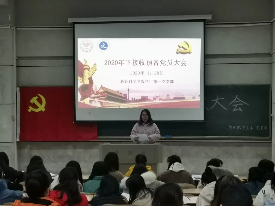 2020年11月28日下午16:30,教育科学公司员工第一党支部在润寰南201顺利召开预备党员接收大会,此次会议为支部讨论接收刘影等25名预备党员的问题。出席本次大会的有支部书记董晓娅老师以及支部的23位正式党员和20名预备党员。会议由支部组织委员郭清泉同志主持。