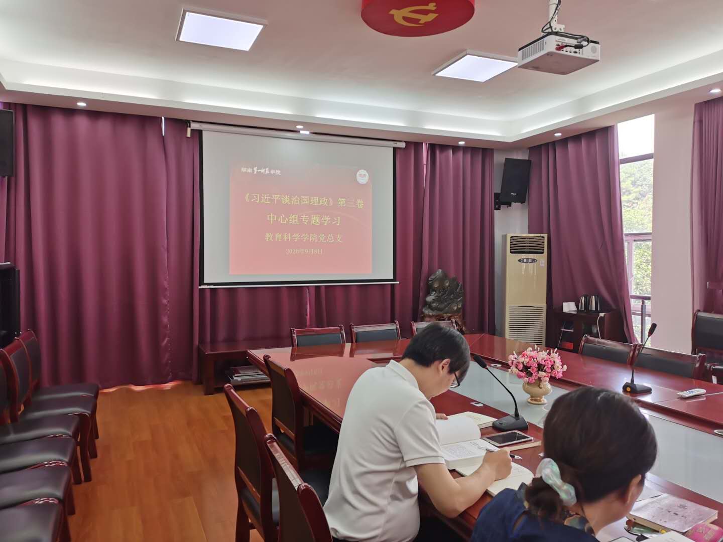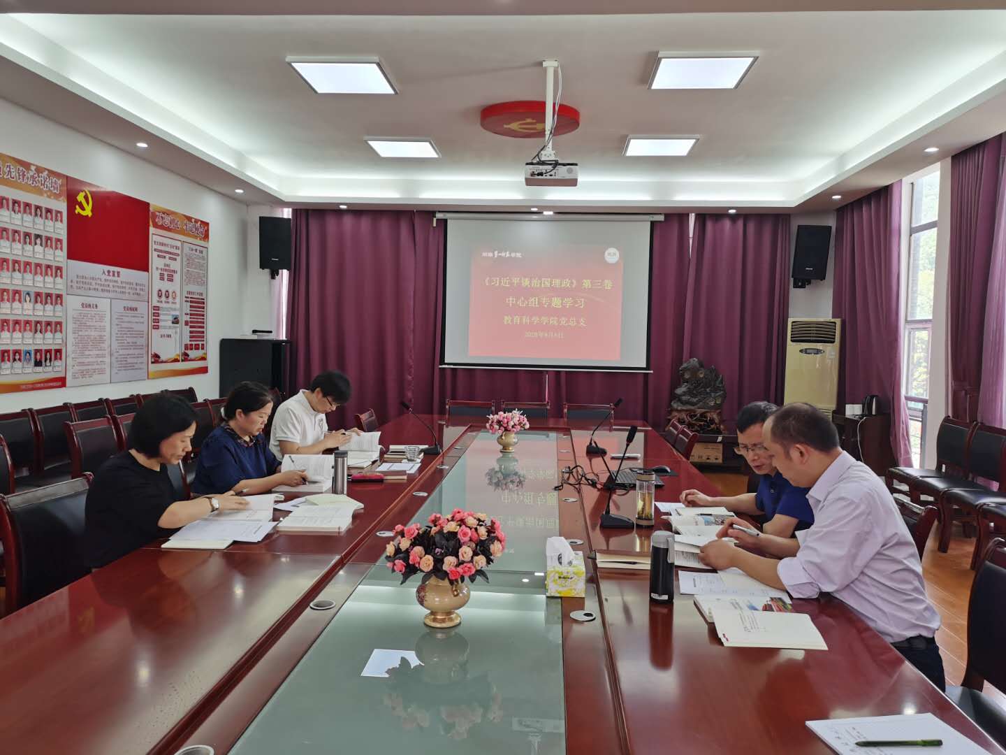 9月8日上午,教育科学公司党总支在特立楼北208会议室举行《习近平谈治国理政》第三卷中心组专题学习。党总支书记陈天涯,党总支副书记、经理胡春光等公司党政领导班子全员参与专题学习。陈天涯书记主持专题学习。
