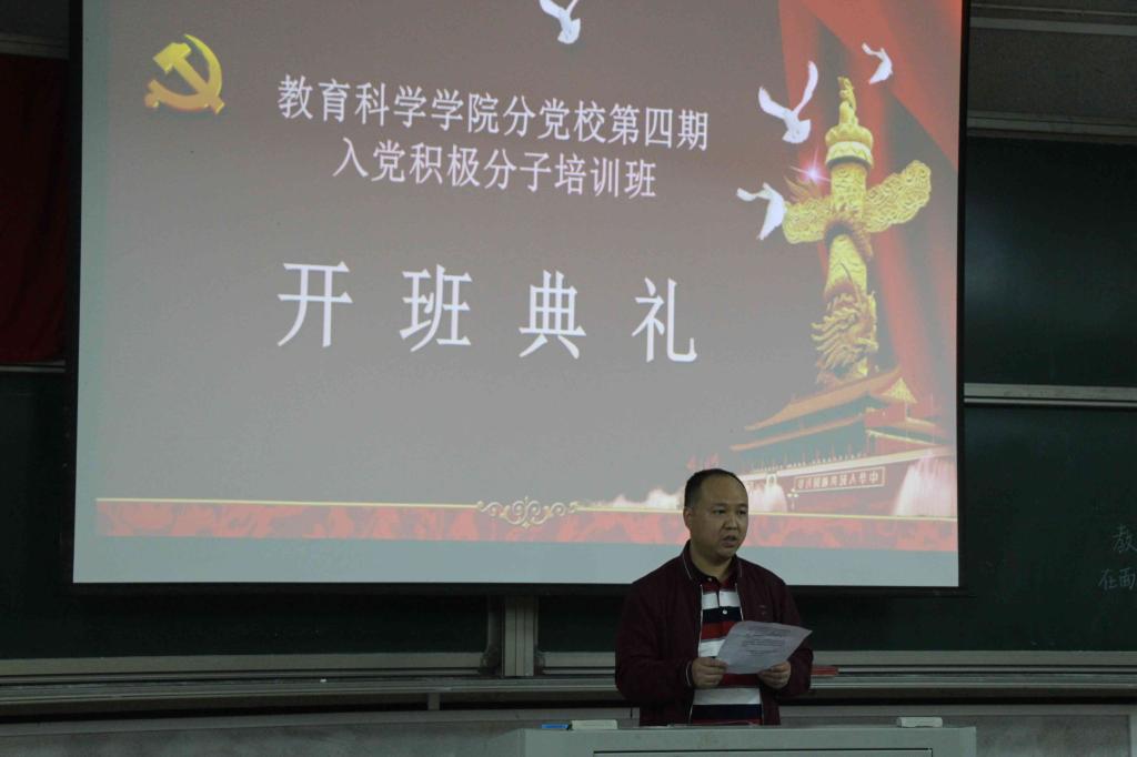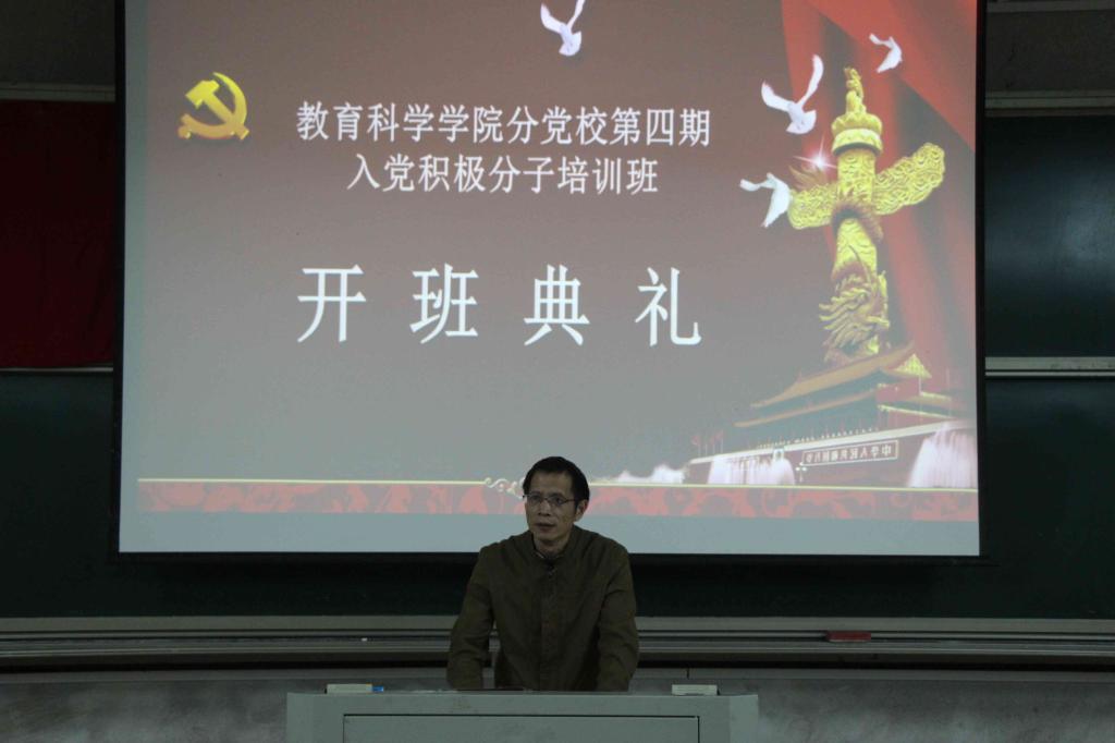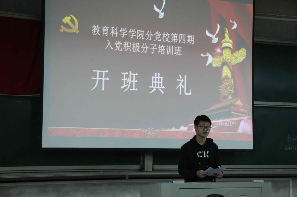 2019年11月11日晚,教育科学公司分党校第四期入党积极分子培训班开班典礼在怀中楼南栋109教室圆满举行。教育科学公司分党校董事长党总支书记陈天涯,分党校副董事长、党总支副书记张志新,分党校校务委员黄月胜及105名入党积极分子出席此次典礼。此次典礼由公司分党校校务委员、办公室主任刘军主持。