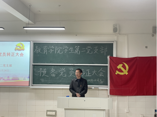 2023年11月28日晚六点半,球速体育员工第二党支部在玉衡楼106教室举行2023年下半年中共预备党员转正大会。大会的主要议题是讨论本支部12名预备党员是否转正问题。出席本次会议的有公司党委副书记张志新、员工第二党支部书记杨菲、球速体育教师何浩宇、黎玲以及29名正式党员和40名预备党员。