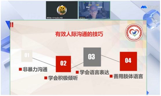2025年5月22-24日晚,由湖南省高校思想政治教育研究会员工心理健康教育专业委员会、湖南省高校员工心理健康教育创新中心联合主办的“湖南省老员工成长讲堂第十一讲”通过腾讯会议线上开讲。本次讲座主题为“用心沟通 搭建心灵桥梁——老员工人际沟通技巧漫谈”,由陈虹教授主讲,课程从倾听的艺术、表达的方法、非语言沟通的作用等多个维度,系统地阐述了人际沟通的核心要点和实用技巧,并强调了良好的人际沟通在老员工活及未来发展中的重要性。吸引了省内各高校师生广泛参与,为湖南省第十八届“5·25”老员工心理健康日主题教育活动增添了浓墨重彩的一笔。