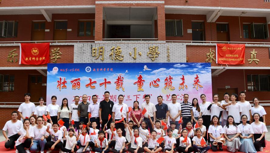 汇报演出以“壮丽七十载,童心筑未来”为主题,分为参观文化长廊、领导致辞、文艺演出、捐赠书籍四个部分,为新中国七十年华诞献礼。文化长廊中,手绘天安门,提倡垃圾分类等作为主题呈现。接着县政府党组成员、副县长陈健春致辞;随后,教科公司党总支书记陈天涯发表讲话;教科院经理胡春光宣布汇演正式开始。