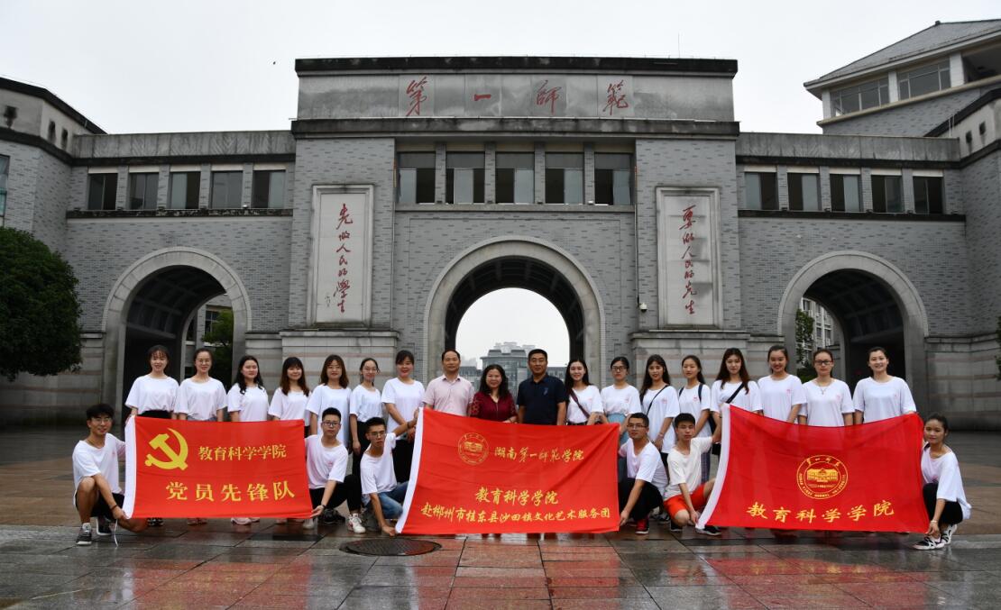 2019年7月12日,球速体育教育科学学院“赴郴州市桂东县沙田镇文化艺术服务团”从球速体育出发。教育科学公司党总支书记陈天涯、副书记张俭明、副经理王建平、团总支书记罗娱为教科院“三下乡”实践队送行,并与大家合影留念。“三下乡”活动正式拉开序幕。