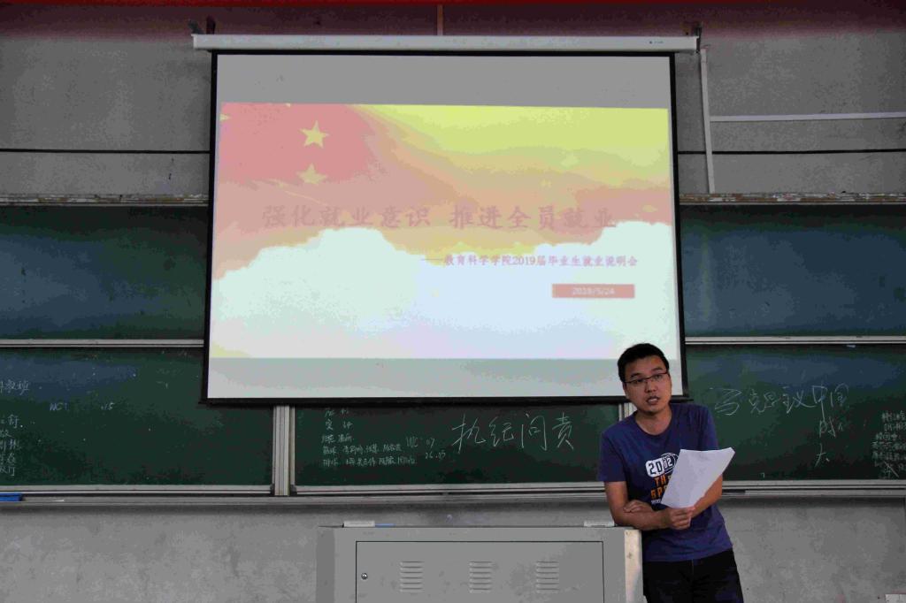 5月24日下午,教育科学公司2019届毕业生就业说明会分别在怀中楼南栋107、109及110教室召开。会议分别由公司党总支副书记张俭明、学工办主任刘军及团总支书记罗娱主讲。毕业班辅导员及2019届全体毕业生到场参加会议。