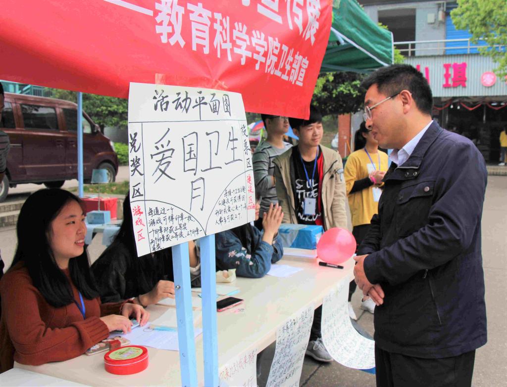 2019年4月23日上午,由教育科学公司卫生部主办的“第一届爱国卫生月活动宣传展”在国基广场顺利举行。党总支陈天涯书记、张俭明副书记、学工办主任刘军老师以及全体辅导员老师应邀来到现场参观,担任“创意卫生”作品评委,并对部门工作进行精准点评。