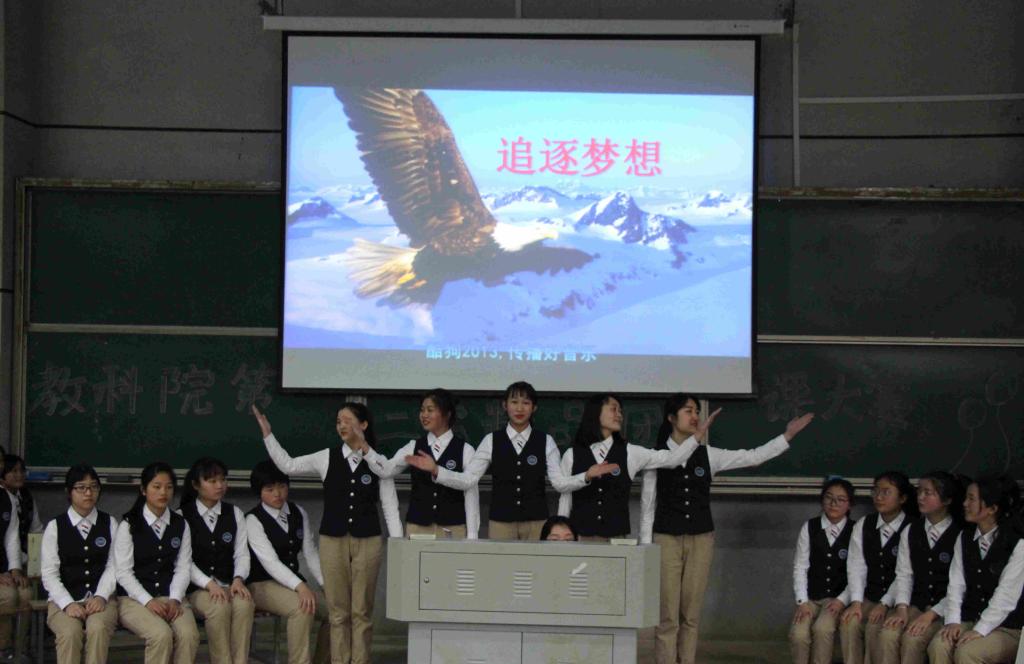本次决赛共有18级8个班级进行团课展示。784科教班用三句半形式表演的《看五四》活跃了全场气氛;诗歌朗诵《追逐梦想》表达了团员们积极向上、努力拼搏的决心。785科教班用情景剧演绎了五四运动中的一个小片段,把现场的观众们都带回了那段激情似火、青春飞扬的日子。科教2班则从“党之初建·党之发展·党之繁荣”三个阶段展示了党的建设成长历程。小教文3班以“重温入团仪式”为主题的情景剧,融入爱国教育,极具思想凝聚力。用百年前一师青年的慷慨宣言以及当代青年的梦想目标,小教理4班强调了青年对国家发展的重要促进作用。轻松活泼的快板表演、《青春中国》的深情朗诵、以及紧跟潮流的手势舞,小教文2班尽显朝气与灵动。786科教班的《团课大本营》以“作品展示”与“问题抢答”的形式展开,让人耳目一新。小教理1班从忆往昔、看今朝、展未来三个层面展开团课,引领我们争做新时代新青年。