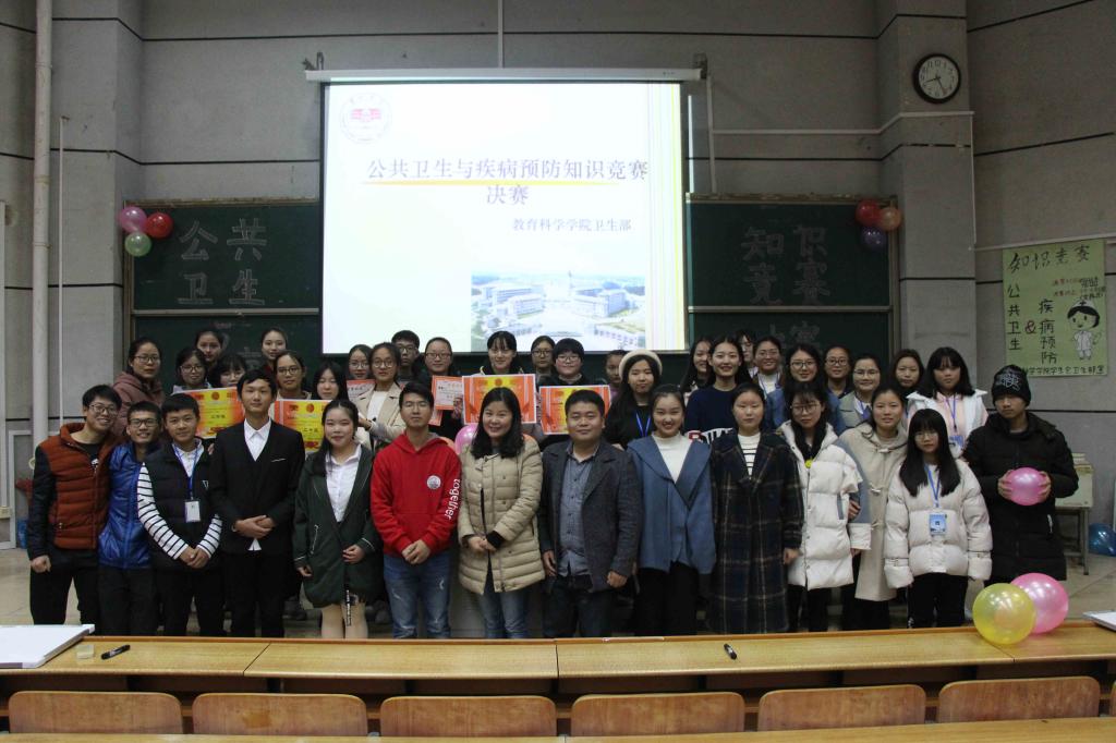 为了助力创建文明高校,提高同学们的公共卫生意识,丰富同学们的疾病预防知识,由教育科学公司卫生部主办的首届公共卫生与疾病预防知识竞赛决赛于2018年11月22日19点在怀中南110举行。公司罗娱、邓魁和廖弘宇老师受邀出席,约一百多人到场观赛。