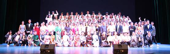 随后开始的毕业晚会,首先播放了一段毕业生们在一师生活的视频,表达了毕业生们对母校的深深眷恋之情。饱含历史厚重感的朗诵《站在岁月的肩膀上远眺》深入诠释了一师的文化底蕴和教育理念。“乐器之王”与“乐器皇后”的合奏《假如爱有天意》清丽脱俗,令人回味无穷。一师员工余丽英董事长现场即兴演唱的《越走路越宽》,表达了对毕业生们的美好祝福。情景剧《苔》再现了温情的支教生活,展示了师范生的职业情怀。当代舞《秦淮景》再现了日寇屠刀下金陵十三衩舍己救员工的悲壮场景,闪耀着人性的光辉。而震撼全场的朗诵合唱《青春不散场》通过对一师生活的诵读和激情澎湃的合唱为晚会画上了圆满的句号。