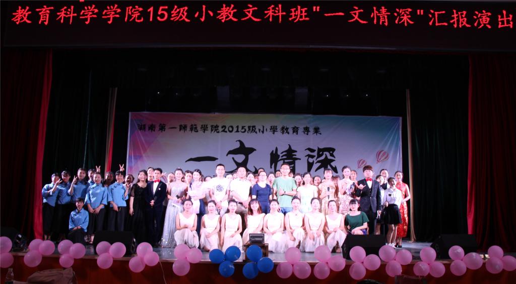 令人期待已久的教育科学公司2015级小学教育文科班“一文情深”专业汇报演出于2018年5月21日晚在特立楼演播厅隆重举行。蒋蓉经理、张俭明副书记、王建平副经理、小学教育教研室全体老师、各位辅导员及300余名员工一起观看了汇演。