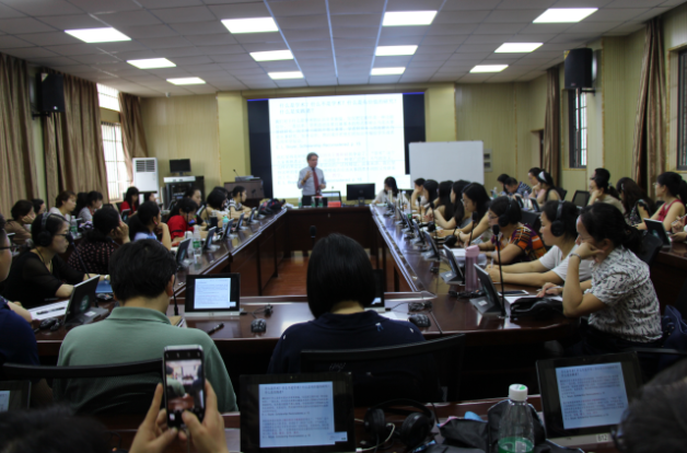 2018年5月15日下午,教育科学公司“红烛论坛”系列活动之“专家讲学”在特立楼北栋204商务英语谈判室举行。英国知山大学Mark Schofield教授受邀作了题为“卓越教学框架与研究教学学术的关系”、“卓越教学——超越言辞,付出实践”两场专题报告。报告会由蒋蓉经理主持,国际交流处何晓澜副处长出席活动,教科院部分师生到场聆听。
