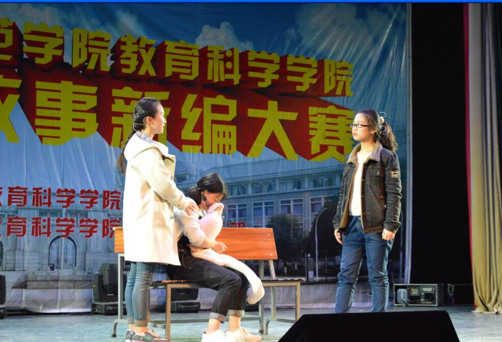 2016年4月6日晚,教育科学公司第七届故事新编大赛决赛在科技楼演播厅隆重举行。院领导蒋蓉、谭玉兰、张俭明及陶青、刘军、文红、董晓娅、石慧、罗娱等辅导员老师应邀出席并担任评委,教科院400余名师生参与了此次大赛。