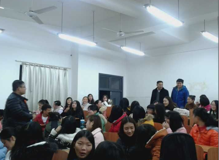2015年11月29日晚,教育科学公司党总支副书记张俭明、学工办主任陶青对各班晚点名进行了检查督促。