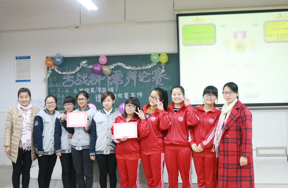 经过紧张激烈的辩论,最后,14级科学教育665班、15级科学教育695班荣获一等奖,15级科学教育694班、15级小学教育文科3班荣获二等奖,14级小学教育理科2班、14级小学教育理科3班、14级学前教育2班以及15级小学教育理科5班荣获最具潜质奖。吴怡、邹益珍等同学荣获“最佳主席奖”,胡苏芹、阳芷晴、胡叠、邹凤、覃梦铃、黄思佳六位同学荣获“优秀主席奖”。