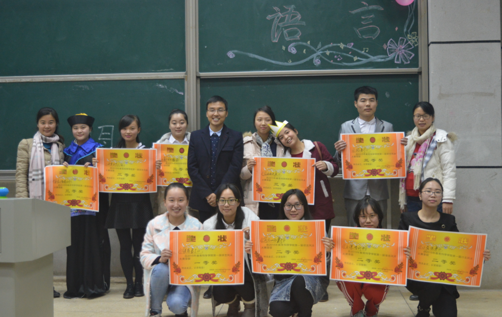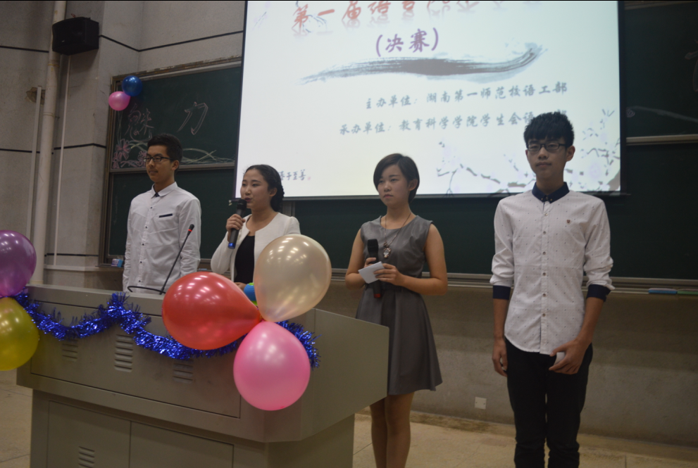 2015年11月20日晚7点,由教育科学公司团学会语工部组织的语言风采大赛决赛在文科楼报告厅隆重举行。由刘军、杨杨、罗娱三位老师及教育科学公司院干代表组成评委团,教科院众多同学观赏了精彩的比赛。