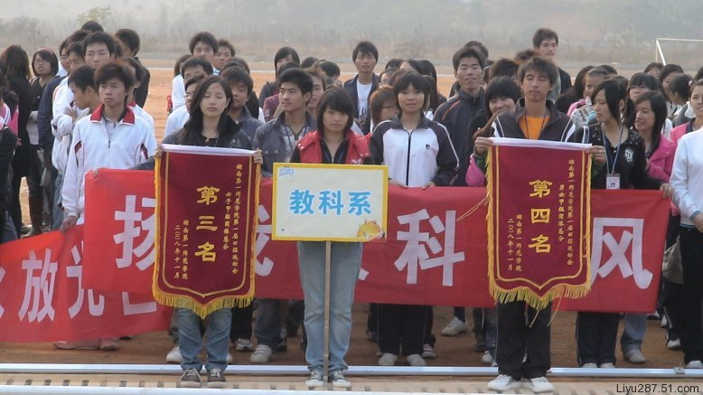 2008年11月15日17时,球速体育在新校区举办的第一届校园田径运动会在欢呼和喜悦中圆满的拉下帷幕。在激烈的竞争中,教科学子奋勇拼搏,取得了团体总分第四,女子第三的好成绩。教科系辅导员刘军老师接受记者采访时表示,在对手如此强大的赛场上,教科系能够取得这样的好成绩与同学们勇往直前、团结合作的精神是分不开的。