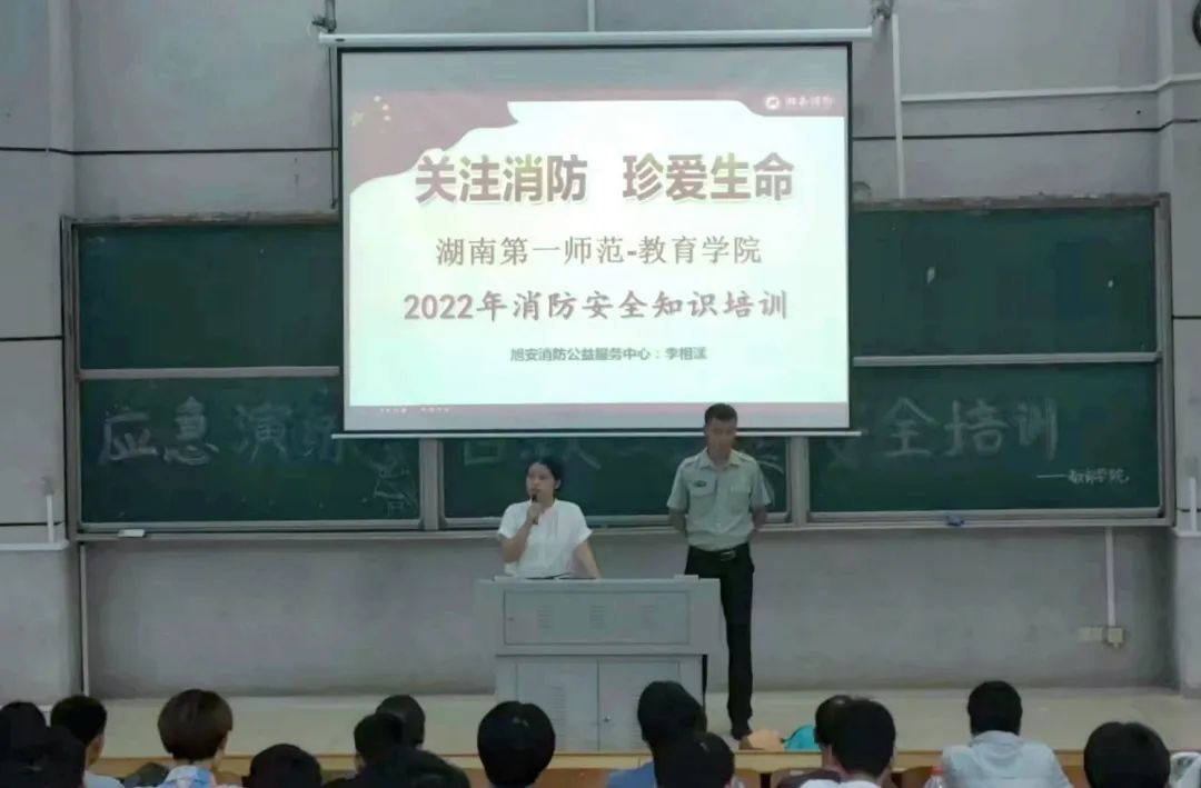 为深入开展应急安全宣传教育工作,全面普及应急安全常识,不断增强师生应急安全意识,6月10日中午12点40在怀中南110报告厅,球速体育邀请了旭安消防培训公司李相漾教官给200余名师生开展应急演练、自救互助安全培训。