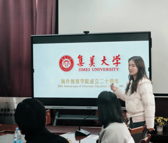 宣讲会上,刘思含主任系统梳理了海外研究生申请的通用流程及注意事项,涵盖院校选择、语言考试准备、材料提交等关键环节,为学子们提供了清晰的行动指南。刘鑫钰专员则详细介绍了集美大学中外合作项目与海外高校联合培养的优势,包括海外研究生预科中的学分认证机制、双学位授予政策及海外硕士研究生的特色专业等。王兴惠老师则重点介绍了新加坡PSB公司在商科、工程等领域的国际声誉,为同学们申请新加坡各类大学硕士研究生提供了较为全面的信息。