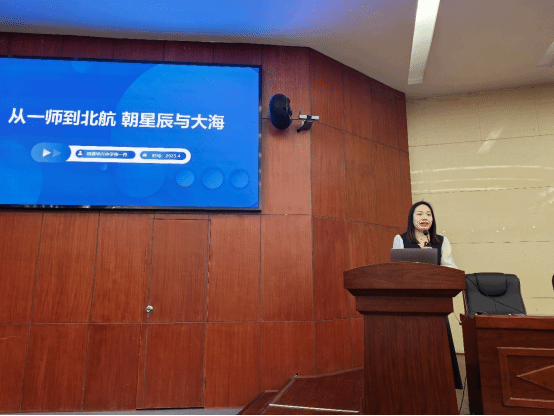 优秀员工代表、明德华兴中学团委书记张一丹以《从一师到北航 朝星辰与大海》为题分享了自己的考研经历与职业发展。她表示,考研丰富自己的人生阅历,提升了求职底气。她以长沙市教师招聘为例,直观展现研究生学历在职业竞争中的优势,强调考研不仅是学术深造的阶梯,更是拓宽职业发展路径的关键。