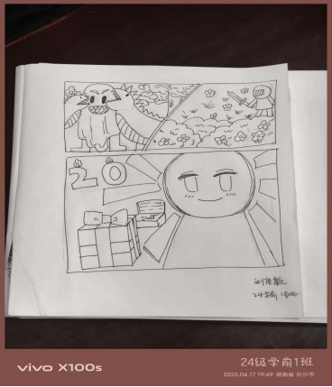 4月14日至17日,心育部分阶段面向大一11个班级员工开展了“二十岁生存游戏:今天你通关了吗?”——互动式朋辈心理课。以游戏副本为创意蓝本,将学业、生活焦虑转化为趣味挑战。在课程尾声,以“二十岁成就认证”拍照任务定格成长足迹,各班优秀作品在官Q展示投票,联动其他年级员工围绕“与自己和解”主题创作漫画,优秀作品随后在特立楼展出,吸引众多师生驻足观看。