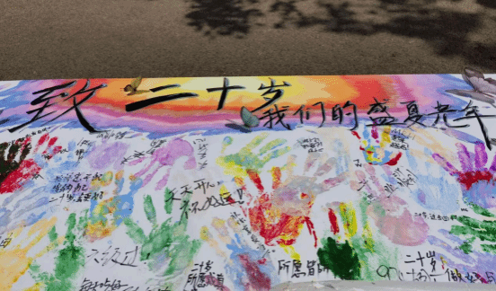 4月25日,心育部在国基广场举办手绘画接力活动。活动现场,员工们或用颜料涂抹手掌留下独特个人印记,或围绕“二十岁”主题自由创作绘画作品,尽情发挥想象力,描绘对未来的期许与当下的感悟。这些手绘画作品最终与主题漫画作品一同展出,为校园增添一抹亮丽的青春色彩。