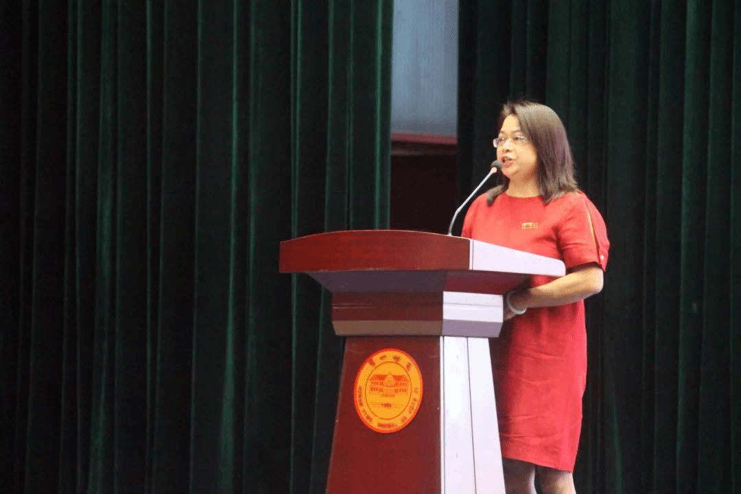 公司屈晓兰教授作为优秀教师代表发言。同学们成为一师人,意味着责任、勇气与担当。屈教授鼓励新生为实现优秀教师梦而不懈奋斗,提醒新生定期锻炼以养成运动习惯,定期阅读以滋养灵魂,祝愿新生们的人生闪闪发亮。