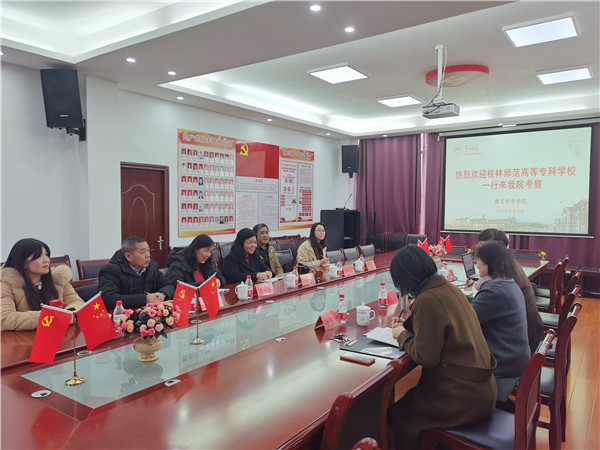 11月30日上午,桂林师范高等专科公司中文系张秀珍主任率团到公司考察交流,公司党总支书记陈天涯、经理胡春光、副经理曾晓洁、党政办老师邓魁在特立楼北208会议室热情接待了来访客人。