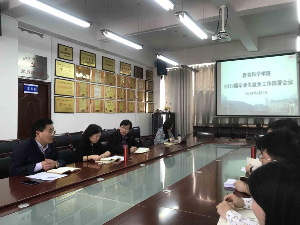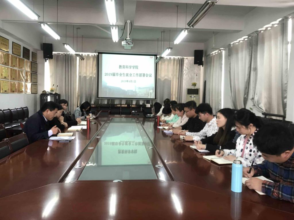 4月1日下午,教育科学公司2019届毕业生就业工作部署会在特立楼208会议室召开,公司党政负责人,学工办主任及全体辅导员与会。会议由书记陈天涯主持。