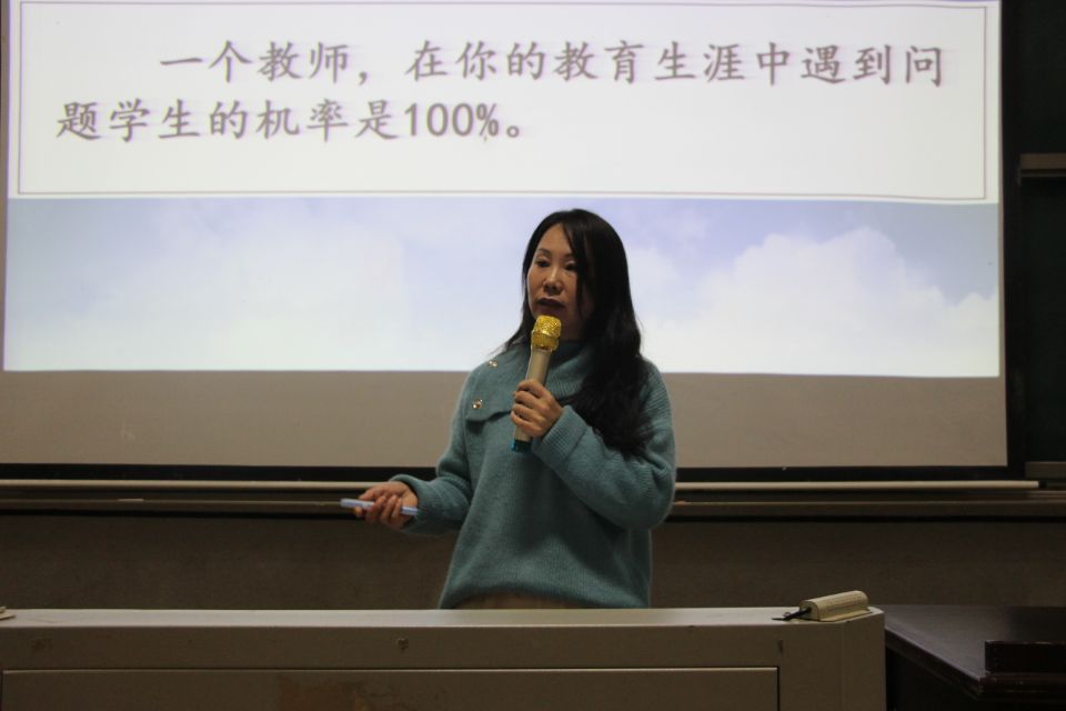 王老师以她二十多年来的教育专业知识和丰富的教育经验,通过四个真实的教育故事,用生动的授课语言,现实生活中鲜明的案例分享等多种方式,阐述了多种教育理念,一个个精彩生动的案例,一句句合情合理的分析,在同学们之间引起了共鸣。“最美的教育应从尊重生命开始,使人性向善,使人胸襟开阔”,“批评一个员工等于塑造一个员工,厌恶一个员工等于毁掉一个员工”,“仅仅爱员工是不够的,还要有一颗敏感的心以及深厚的知识”。把教育之美,成就生命之美的真谛有效的传递给了全场同学们,全场聆听者受益匪浅,不时送上阵阵热烈的掌声表示认同!