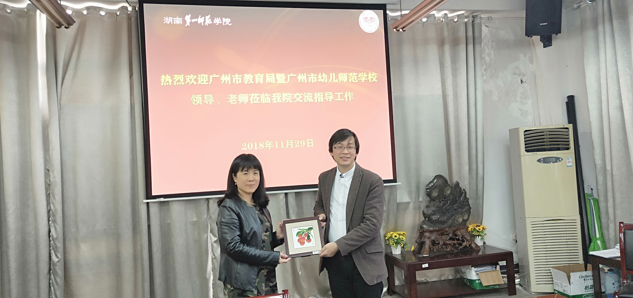 2018年11月29日下午,广州市教育局规划建设处郭文副处长、广州市幼儿师范公司丘毅清董事长等一行10位教师来公司学习交流。公司胡春光副经理、学前教育教研室万湘桂主任、公司党政办李令主任、院教科办汤勇主任以及院学工办刘军副主任在特立楼北栋208会议室热情地接待了来访人员。