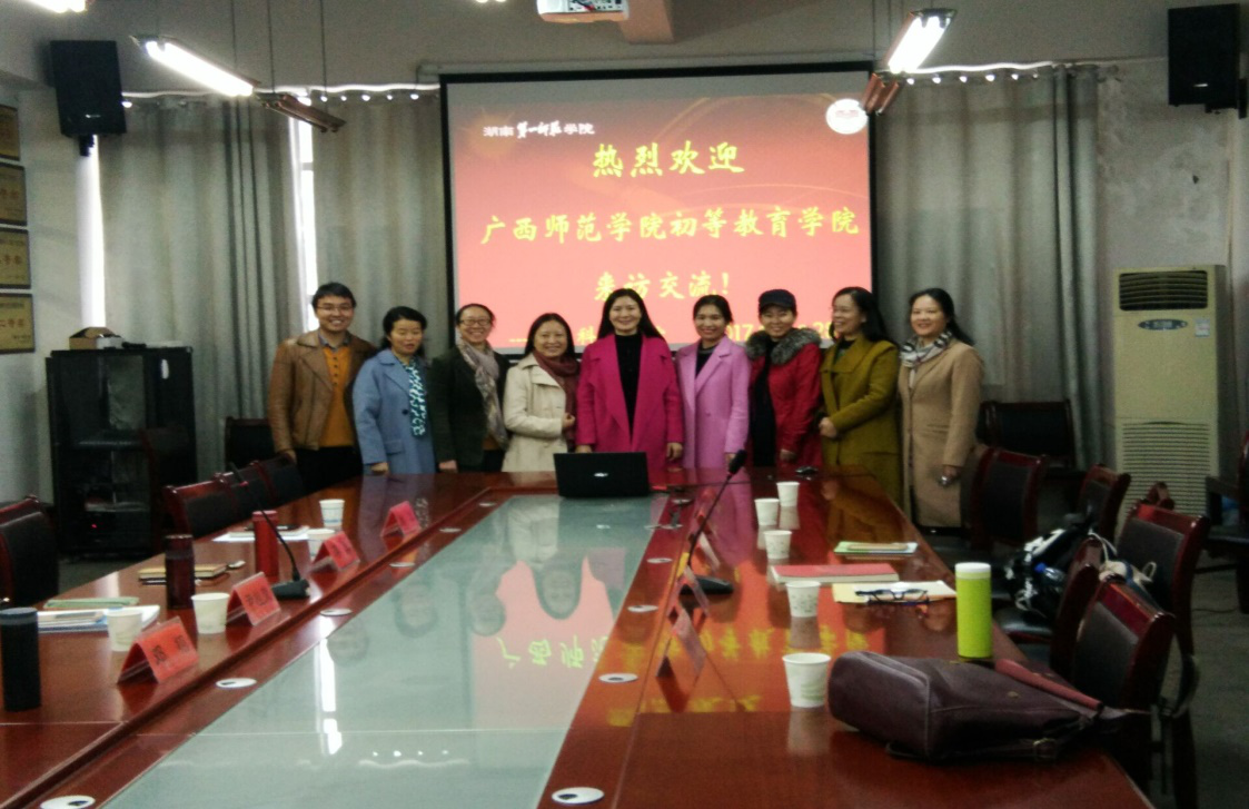 11月28日上午,广西师范公司初等球速体育小学教育系黄寒英主任、潘登老师等一行五人来公司就小学教育专业建设工作进行交流。公司蒋蓉经理、小学教育教研室主任尹桂荣、邓栩和刘军、李令等五位教师在科A208会议室热情接待了来访人员。