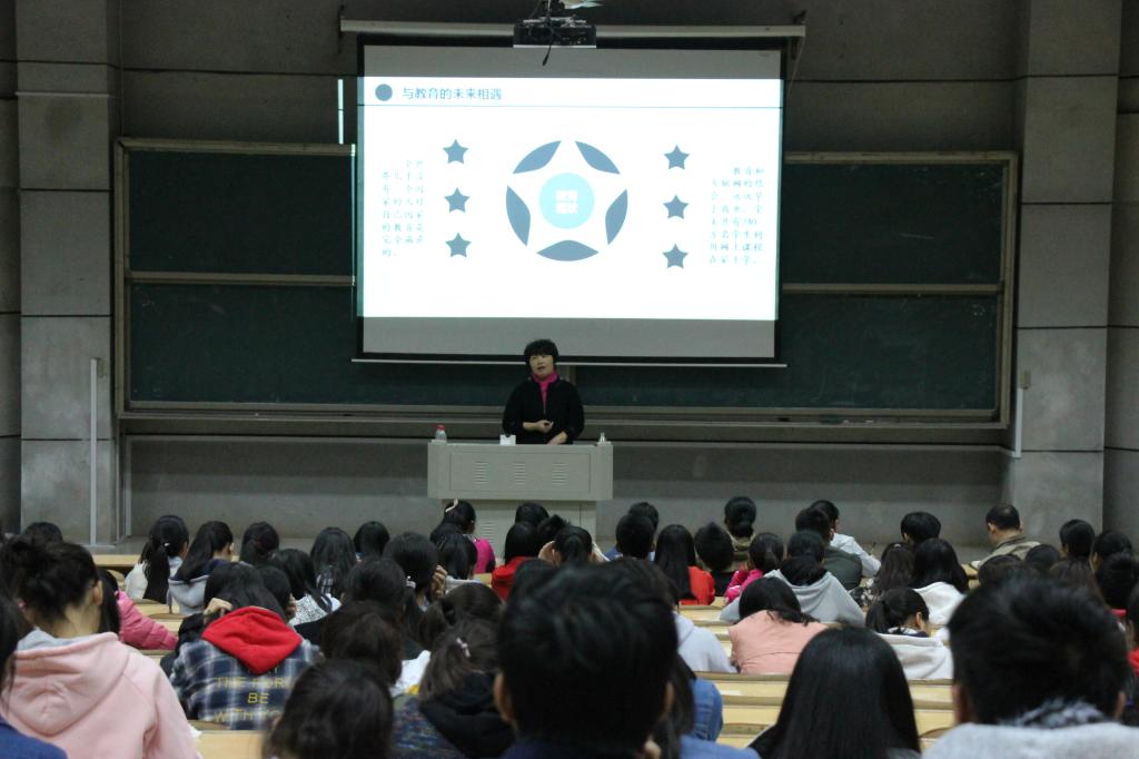 为了讲座达到良好的效果,活动前期,员工干部团体号召学委在班级内部积极宣传,并组织工作人员联系相关老师、领导,准备场地与设备。本次活动也得到了公司领导及老师的高度重视,王建平副经理亲自担任讲座主持并致辞,向刚走进一师校园的新生们隆重介绍了陈雷董事长。