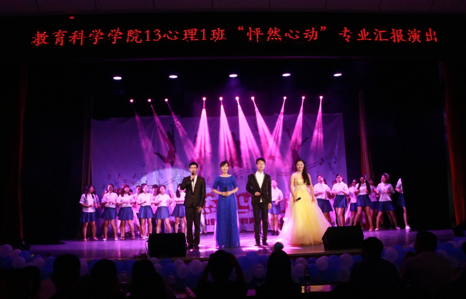 2016年5月31日晚,公司2013级心理学专业“怦然心动”专业汇报演出在科技楼实验剧场隆重举行。公司党委副书记刘志敏,教育科学公司负责人蒋蓉、王建平、张俭明,心理学教研室主任朱丹及大部分专业教师、全体辅导员、家长代表应邀出席,与在场300余名员工一起观看了演出。