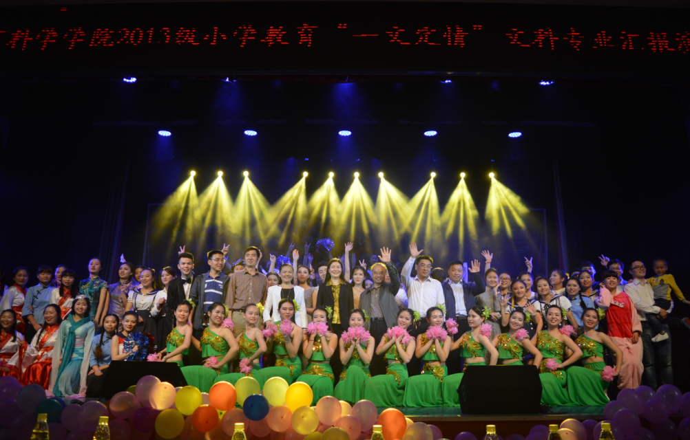 2016年5月27日晚,教育科学公司2013级小学教育文科班“一文定情”专业汇报演出于科技楼实验剧场隆重举行。公司党委书记彭小奇、人才招聘处处长黄小喜、马克思主义公司副书记谭小红、陇南师专初等球速体育副经理姚鹏和长沙理工大学子弟小学董事长余丽英,教育科学公司负责人蒋蓉、张俭明及全体辅导员、小学教育教研室老师应邀出席,与到场员工约500余人一起观看了演出。