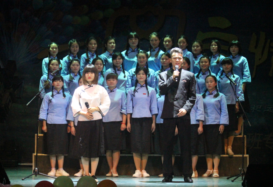 演出在开场爵士舞《up and down》的火爆氛围中拉开了序幕。演出通过歌曲、舞蹈、话剧、走秀等丰富多彩的形式,紧扣文科员工专业特色,穿插微博互动、随机抽奖环节,充分体现了同学们的精巧用心。其中,古韵十足的鼓舞《相和歌》,将古典诗歌与民族舞蹈完美结合,尽显传统文化的无穷魅力。童话剧《七只淘气的小鸡》表演生动,寓教于乐,引人深思。爵士舞《bang bang bang》男女演员配合默契,动感十足,展示出超强的舞台表现力和感染力。走秀节目《冰菊物语》更是惊艳全场,身着旗袍或中山装的男女演员,令观众仿佛置身于民国时代,随手展示的员工优秀书画手工作品,彰显了小学教育专业员工扎实的专业技能。小学教育教研室老师们献上的合唱《明天会更好》感情真挚,唱出了对同学们未来的祝福,寄予了殷切的期望。由长沙市理工大学子弟小学董事长余丽英带来的独唱《报答》饱含深情, 表达了对母校的感恩。最后,民歌合唱《相亲相爱》质朴激昂,用动人的歌声为本次演出画上了圆满的句号。