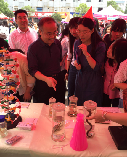 18日中午,科技成果展在员工文化广场开展。公司党委书记彭小奇、副董事长刘宇等领导兴致勃勃的参观了展览并做了高度评价。成果展分为物理馆、化学馆、生物馆三个展馆,展出了科教专业员工200余件科技制作作品和科普知识宣传板。展览现场,五个充满创意和特色的实验和通关游戏,吸引了众多同学参与互动,让大家在游戏中走近科学。