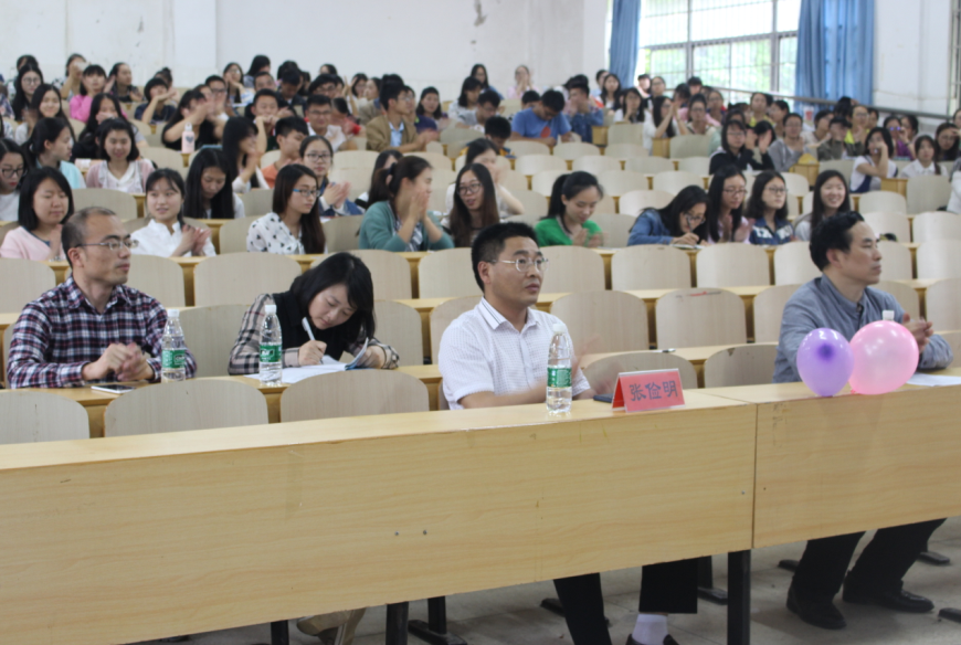 2016年5月18日下午2时15分,教育科学公司于实验楼c栋101教室开展了第四次红烛论坛讲座——2012级实习总结交流与表彰大会。莅临本次大会的领导老师有教育科学公司副经理张平柯,副书记张俭明、教科办老师汤勇和实习指导教师李必鑫、许兰,350余名同学出席。