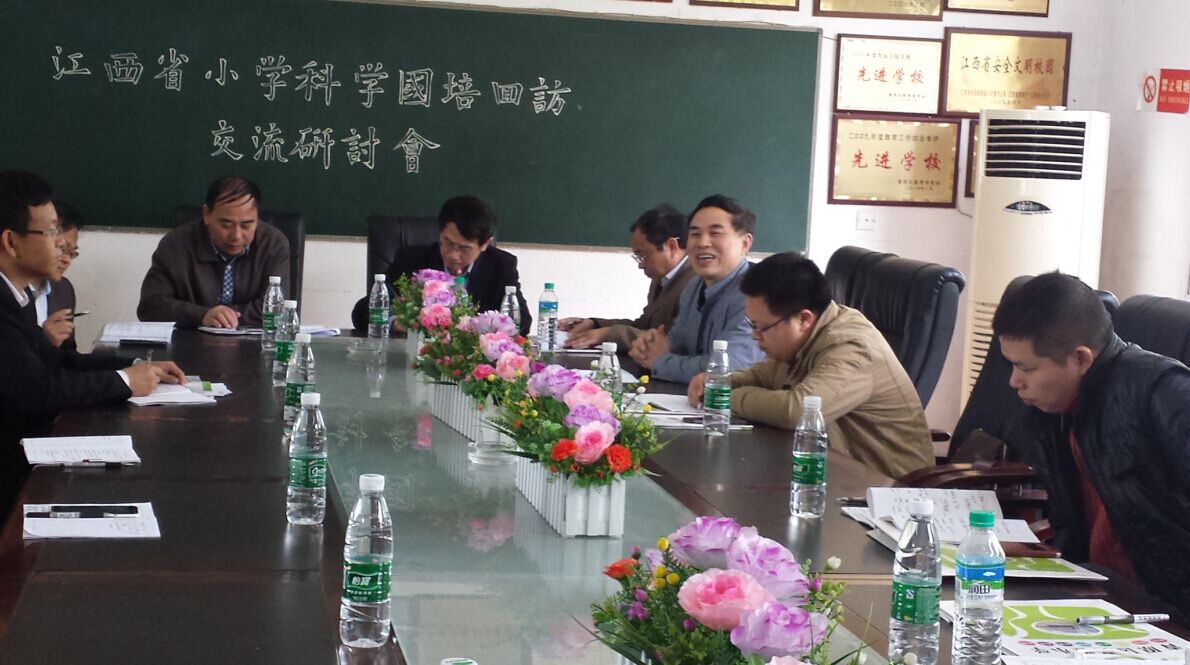 公司国培专家深入到江西省小学教育一线,对已培训学员进行了走访和交流。专家们进入南昌市经开区英雄公司、南昌市红岭公司、吉安市青原区实验小学、井冈山实验小学,看望了江西省2013届、2014届科学国培学员,了解国培对他们的教学工作和科研工作的促进作用,以及他们在教学中遇到的困惑和需要提供的专业指导。专家团队还从长沙市选拔了优秀科学教师送课上门,与江西省的优秀科学教师以及国培学员,进行了多堂小学科学课的交流,开展了评课和交流活动。其中南昌市经开区英雄小学吴玉芳老师的《铁生锈了》、吉安市天立实验小学谢丽萍老师的科学课《物体在水中是沉还是浮》、万安芙蓉中心小学宋雪媛老师的《声音是怎样产生的》,以及由公司国培专家亲自指导、长沙市张敏名师工作室的科学名师冯念老师的示范课《月相的变化》都体现了先进的教学理念和高超的教学技巧,得到一致好评。此次回访还对江西省小学教育与小学科学教育情况进行了实地考察,带回了江西省科学教育的先进经验,拉近了公司科学教育团队与江西省小学一线教育工作者的距离,加强了湖南省科学教师与江西省科学教师的联系。