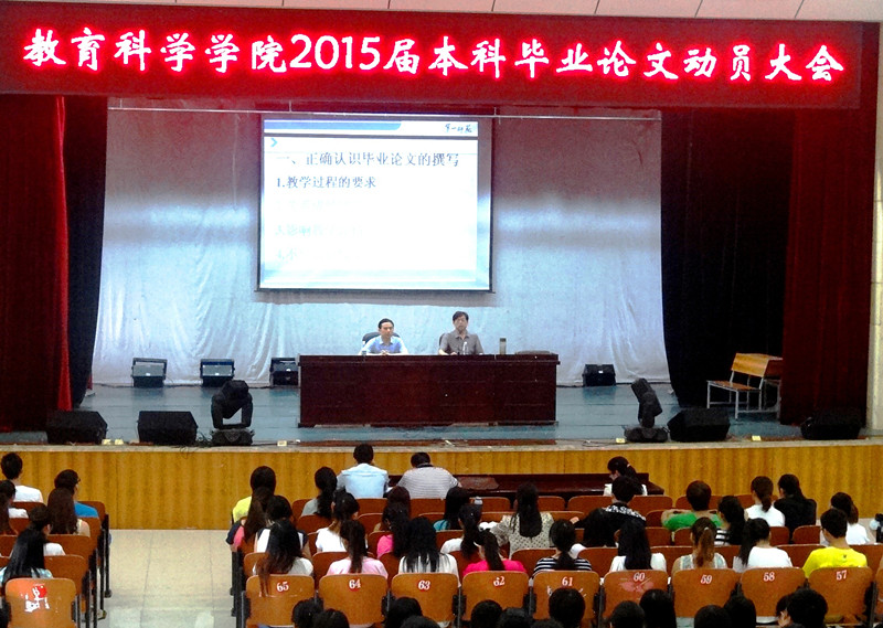 2014年6月23日上午,教育科学公司2015届本科毕业论文工作动员大会在科技楼演播厅隆重召开。大会由张平柯副经理主持,原教务处处长陈梦稀教授到会做专题讲座。大会分两批次进行, 700多名2011级员工聆听了讲座。