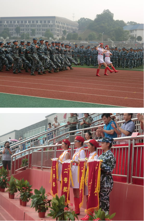 2013年9月22日上午9点,公司东方红校区2013级新生开学典礼暨阅兵表彰大会在田径场隆重举行。教育科学系2013级647名新生组成的7个方阵参加了阅兵典礼,取得了佳绩。国防科技大学丛君兹首长,公司领导彭小奇书记,刘鸿翔、李克勤、刘宇、杨兰英、童小娇副董事长及公司教务处、员工处各职能部门负责人出席了此次活动。
