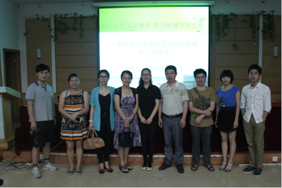 迟洪燕老师通过精美的ppt为大家介绍了菲律宾的风土人情,并表示积极发展华文教育,传播中国文化是一项富有责任感与使命感的任务,它对中国梦的实现有举足轻重的地位。迟老师介绍了在菲期间根据员工的兴趣设计教学内容,精心准备了各种手工材料,教会员工各式的手工制作和剪纸作品的经历以及每天的工作流程。她指出,海外短期中文夏令营活动的特点就是速成性和短暂性,不仅需要各学科教师突出专业特色,更需要整体平衡与互相协调,整体兼顾,互相融合。迟老师精彩的演讲赢得了阵阵掌声,把现场气氛推至了高潮。