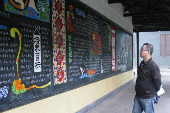 长沙市小学美术教师在观看《一师青年》黑板报