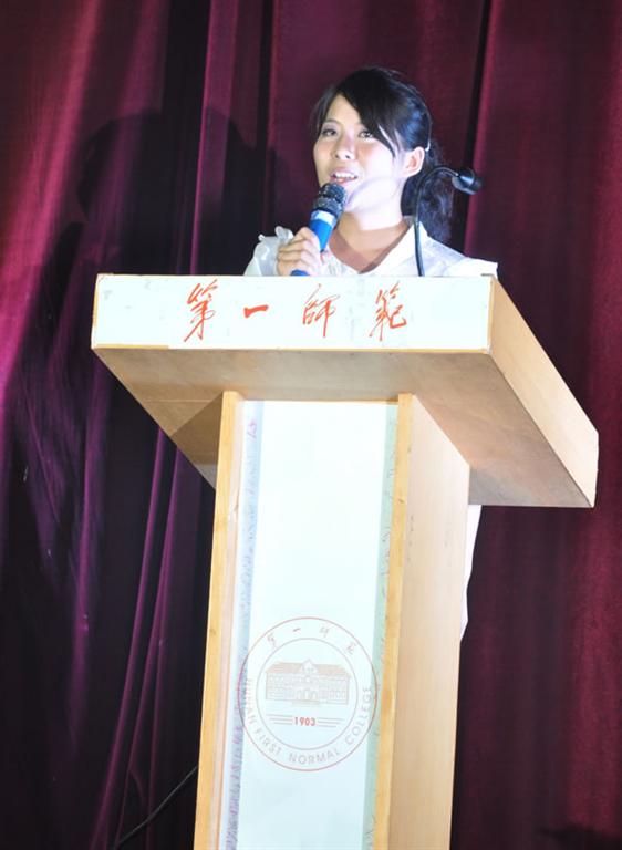 省高校优秀毕业生集体向公司领导献上了同学们亲手制作的丝网花,对领导们的关爱表示最诚挚的感激之情。毕业生代表彭立玉同学的发言,表达了对母校的眷恋、对师长的感激和对同学情谊的不舍之情,在她的带领下400多名毕业生全体起立,举起右手,集体宣誓:“坚定理想,献身教育,服务农村,不辱使命,今天我以一师为荣,明天一师以我为荣!”场面壮观,令人感动!