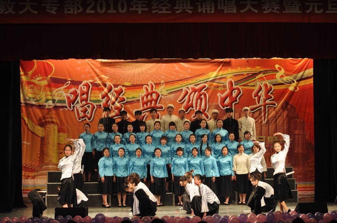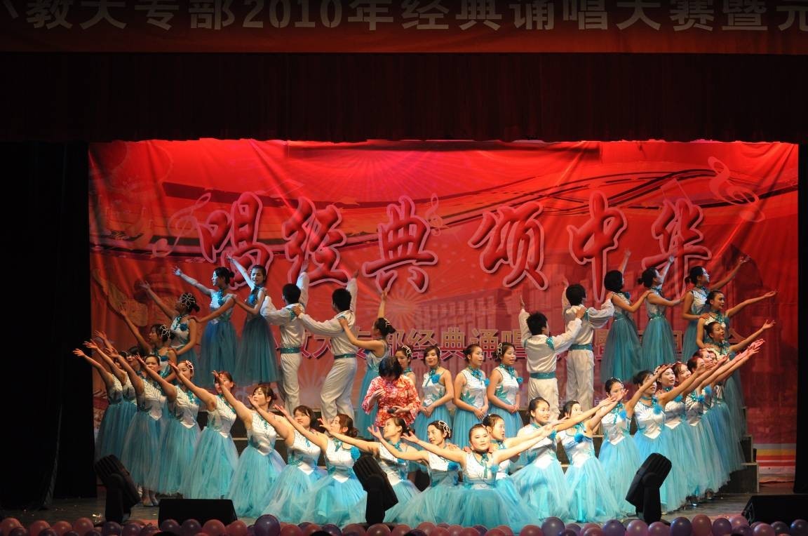 传承中华经典,歌颂伟大祖国。为庆祝元旦佳节,我部于2010年12月28日晚7:00在东方红校区科技楼演播厅隆重举办了“唱经典 颂中华”经典诵唱大赛暨元旦晚会。公司教务处处长陈梦稀、副处长吴靖,公司党委宣传部部长陈志武、院团委副书记罗祥云、文史系副主任邓绍秋、系部主任蒋蓉、副主任张平柯、党总支副书记蔡海军等领导、我部全体辅导员和班主任老师到场观看了晚会。系部老师孙侠、李辉旭、李颖、易文颖、华娟担任了本次大赛的评委。