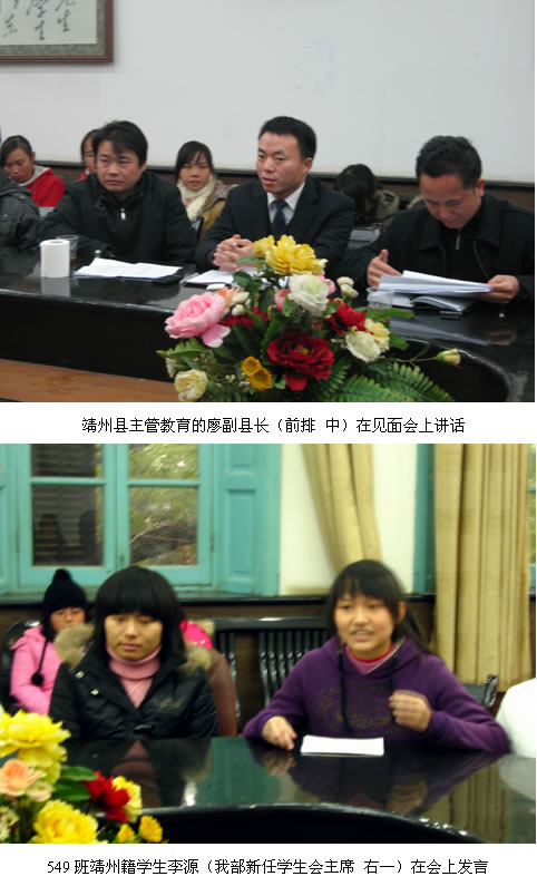 11月18日下午,怀化靖州县主管教育的廖副县长、教育局赵局长和吴书记等一行来校看望靖州籍员工,受到系部蒋蓉主任、张平柯副主任和蔡海军副书记的热情接待。系部为此专门组织了见面会。