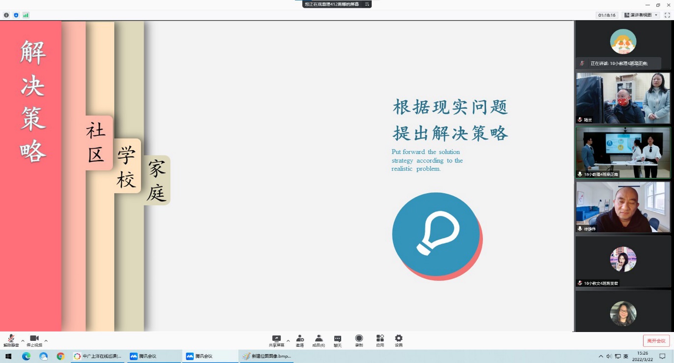 首先,梁正南同学就团队项目内容展开了五分钟的陈述。随后,徐教授分享了自己多年来挑战杯的参赛经验。徐教授从方案设计及实施、成果提炼、PPT制作等多个方面对公司挑战杯团队提出了宝贵的意见。他指出陈述时要注重科学性、故事性,好的课题应“题目抓眼、论证有力”,陈述人要展现课题的魅力,引发评委的共鸣。之后,何教授根据梁正南的陈述就研究综述、数据展示、PPT的呈现方式提出了独到见解,为公司挑战杯团队指明了方向。最后,黄月胜副经理对上海师范大学二位教授的线上指导表达真挚的感谢,并对员工作品寄予了殷切期望。