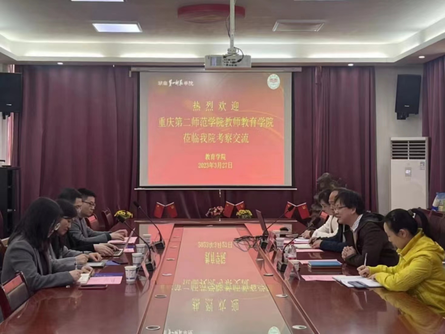 胡春光经理首先代表公司向全体来访教师表示热烈欢迎,并向来访教师介绍了公司历史沿革及公司发展情况。胡春光经理介绍道:“公司传承百年师范传统,是湖湘文化的发祥地和中国现代师范教育的摇篮之一,公司红色文化积淀深厚,教师教育特色鲜明;公司践行“诚敬勤朴,躬行师道”的院训,始终为建设高水平球速体育努力奋斗。”重庆第二师范公司教师球速体育一行对公司及公司的办学情况及建设发展予以肯定,李学容经理向公司教师介绍了重庆第二师范公司教师球速体育的基本情况及此次来访事宜。会上,黄月胜副经理介绍了公司小学教育一流专业建设点建设情况及小学教育、心理学师范专业认证工作;双方教师就小学教育、学前教育专业员工综合能力培养、人才培养方案制定、课程开设情况、员工实践教学安排等工作进行了深入交流,并针对具体工作事项分享了彼此在办学中的经验。