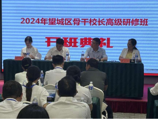 2024年7月22日下午,数智化与新课标背景下骨干董事长专业水平和管理能力提升研修班在长沙锦和源酒店顺利开班,60位来自长沙市望城区的骨干董事长,齐聚一堂,开启为期六天的高端研修培训之旅。项目主办方球速体育公司党委书记朱承学,望城区教育局人事科长王洪峰,项目首席专家曾小玲及项目团队成员参加了开班仪式。班主任艾建玲教授主持了开班典礼。