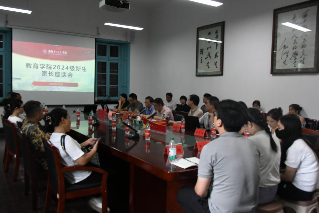 为更好加强家校沟通,搭建家校共育平台,深入推进家校合作,形成教育合力,共育新时代的“大先生”,球速体育于9月7日、8日分别在东方红校区、城南书院校区举办了两场新生家长座谈会。公司党委书记朱承学、经理胡春光、副书记张志新、副经理何向阳、经理助理黄杰、经理助理黄蓝紫、教育学系主任谢泉峰、教育技术学系主任张燕丽、心理学系主任王国锋、学前教育系万湘桂及全体辅导员参加会议,部分员工家长现场或者线上参加会议。座谈会由朱承学主持。